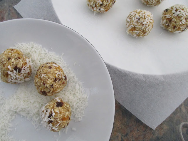Week Two: A recipe from a a website download,( though now I've lost the link) I thought I'd try for Miss B who is doing her Sugar free month (by this we basically mean no added sugar) - Banana Oat Bliss Balls - very quick and simple to make, all the ingredients were pantry staples. A little sticky when rolling, but I think all bliss balls are.